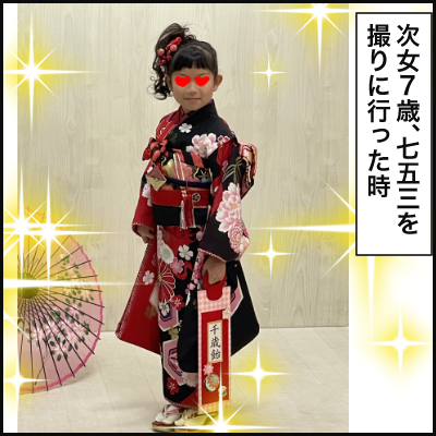 厳密にいうと、七五三って数え年でやるらしいから、次男はあってるけど、次女は去年だったっていうね☆
